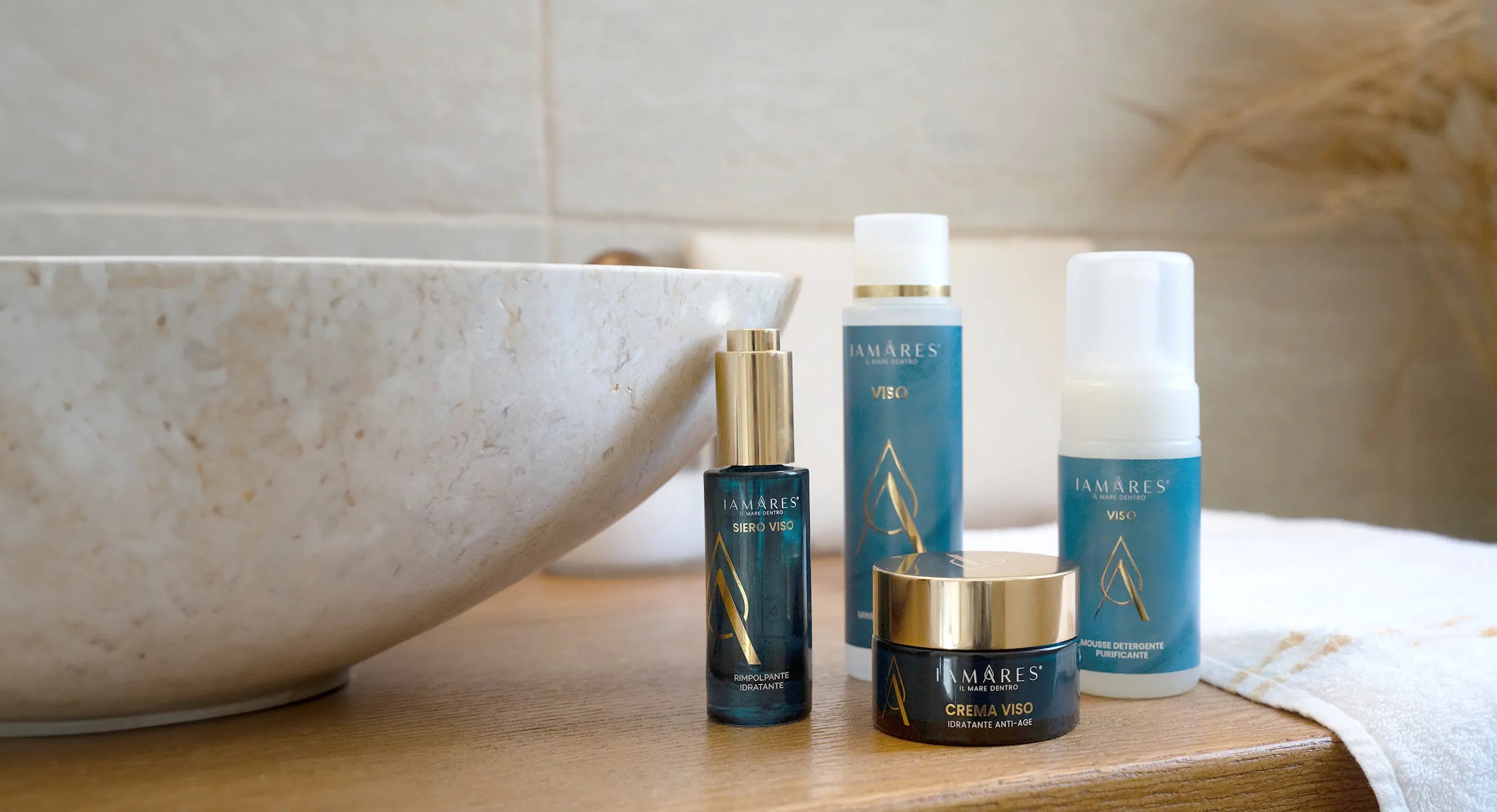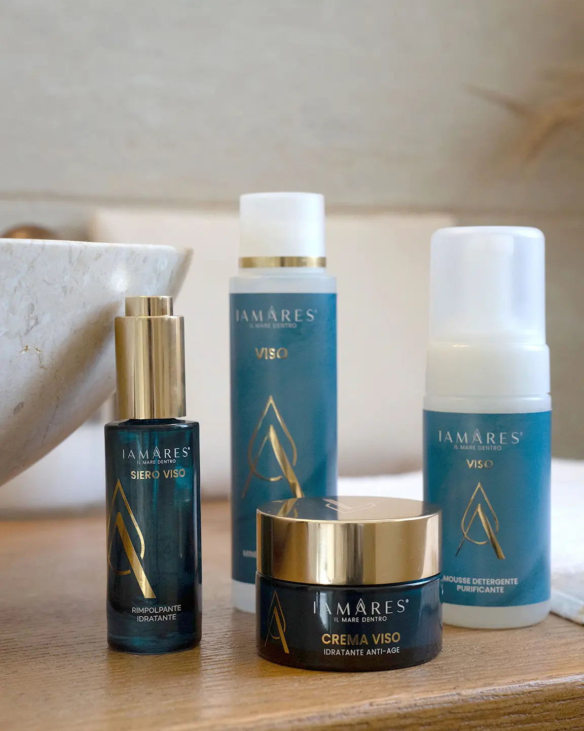 Ogni prodotto IAMARES è una celebrazione della forza e della delicatezza del mare. Dalla crema viso anti-age, al siero rimpolpante, alla mousse detergente e al tonico mineralizzante, ciascuna formulazione è studiata per offrire il massimo beneficio alla tua pelle, preservandone l'equilibrio e la vitalità.
