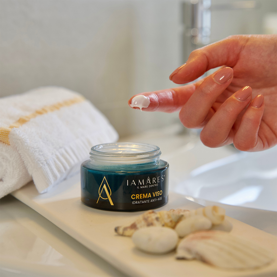 Formulata con li 40% di acqua di mare pura della Sardegna, ricca di oligoelementi, questa crema è progettata per contrastare le rughe e proteggere la pelle dai danni dell'invecchiamento cutaneo.